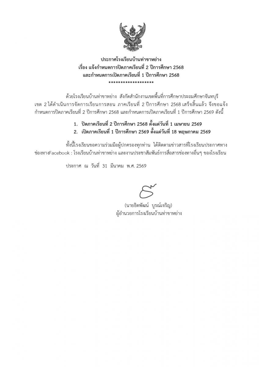 ประกาศปิดภาคเรียนที่ 2 ประจำปีการศึกษา 2568